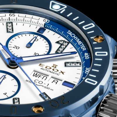 クロノオフショア1コレクションはすべて300m~1000mの高い防水性を備え、スポーツシーンなど高い水圧が生じ得る環境での使用が可能。