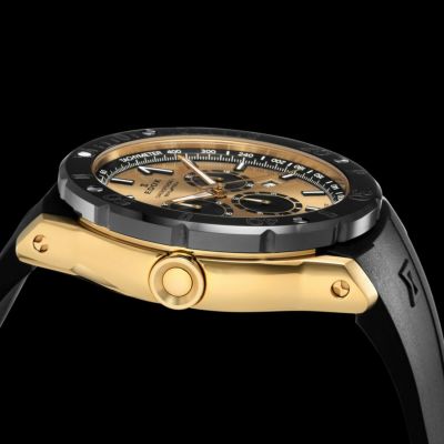 パワーボートレースのタフでダイナミックな世界観を表現した、機能性と防水性に優れたダイバーズウォッチ。