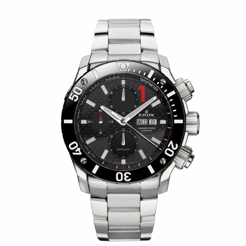 クロノオフショア1コレクションはすべて300m~1000mの高い防水性を備え、スポーツシーンなど高い水圧が生じ得る環境での使用が可能。