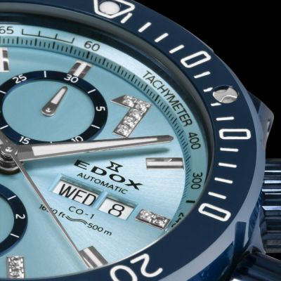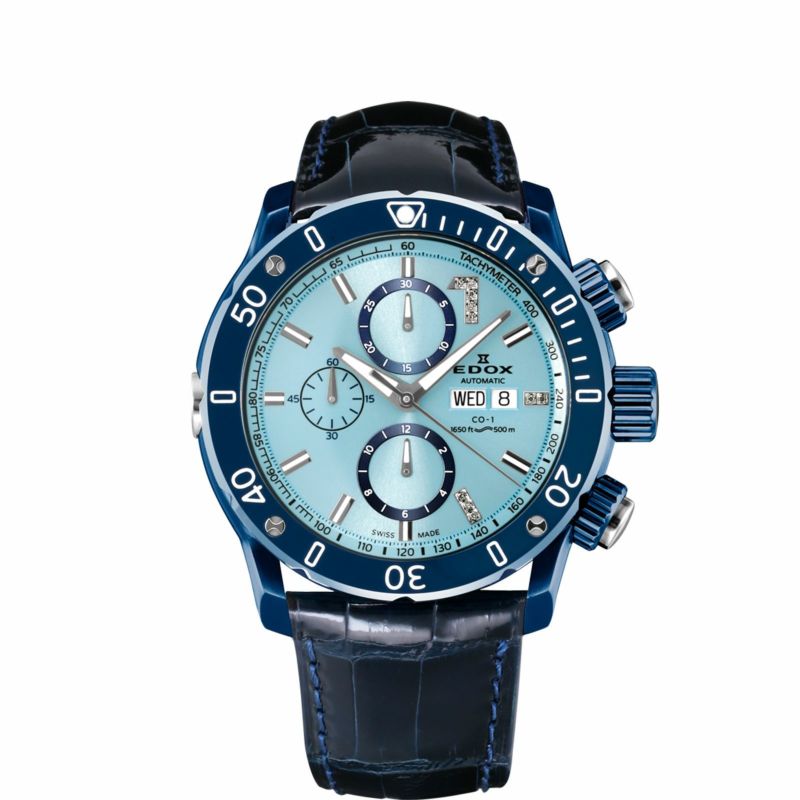 クロノオフショア1コレクションはすべて300m~1000mの高い防水性を備え、スポーツシーンなど高い水圧が生じ得る環境での使用が可能。