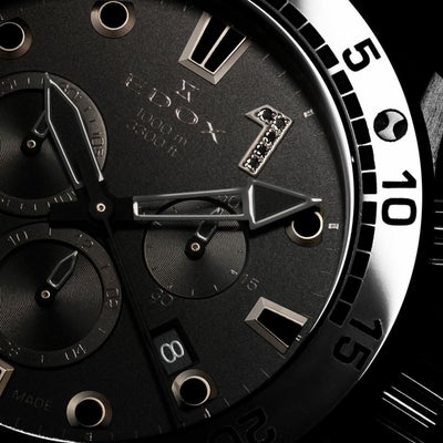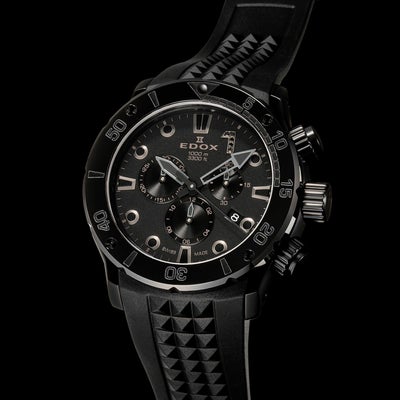 クロノオフショア1コレクションはすべて300m~1000mの高い防水性を備え、スポーツシーンなど高い水圧が生じ得る環境での使用が可能。