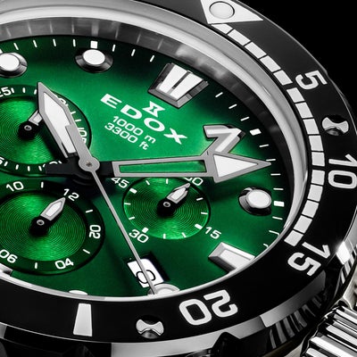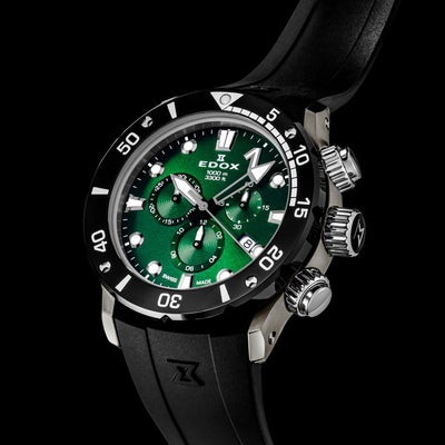 クロノオフショア1コレクションはすべて300m~1000mの高い防水性を備え、スポーツシーンなど高い水圧が生じ得る環境での使用が可能。