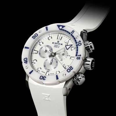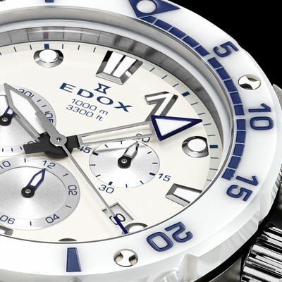 クロノオフショア1コレクションはすべて300m~1000mの高い防水性を備え、スポーツシーンなど高い水圧が生じ得る環境での使用が可能。