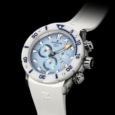 クロノオフショア1コレクションはすべて300m~1000mの高い防水性を備え、スポーツシーンなど高い水圧が生じ得る環境での使用が可能。
