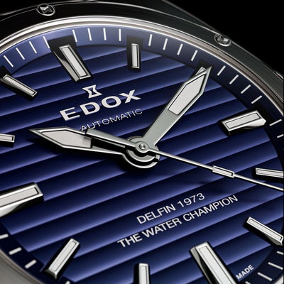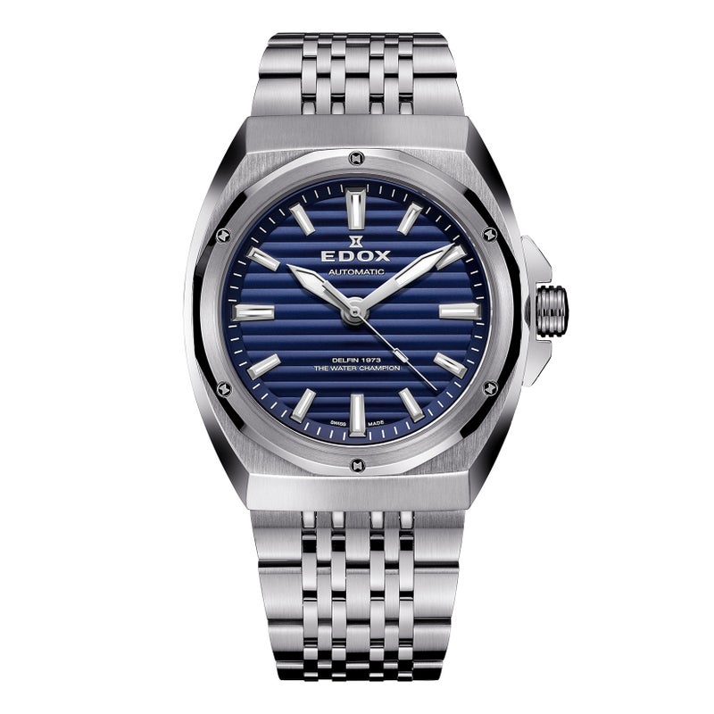 1961年にエドックス旋風を巻き起こした画期的防水時計「デルフィン」。 1973 年のデルフィンに初採用された12角形ベゼルを起点に、1970 年代のモデルに見られるケースデザインの流れを汲みながら構築されたモデル