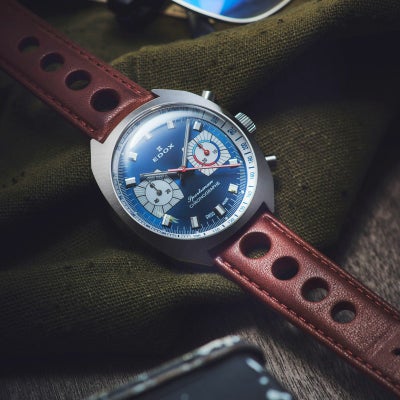 レーシング仕様のブラウンレザーストラップ付属、限定ボックス