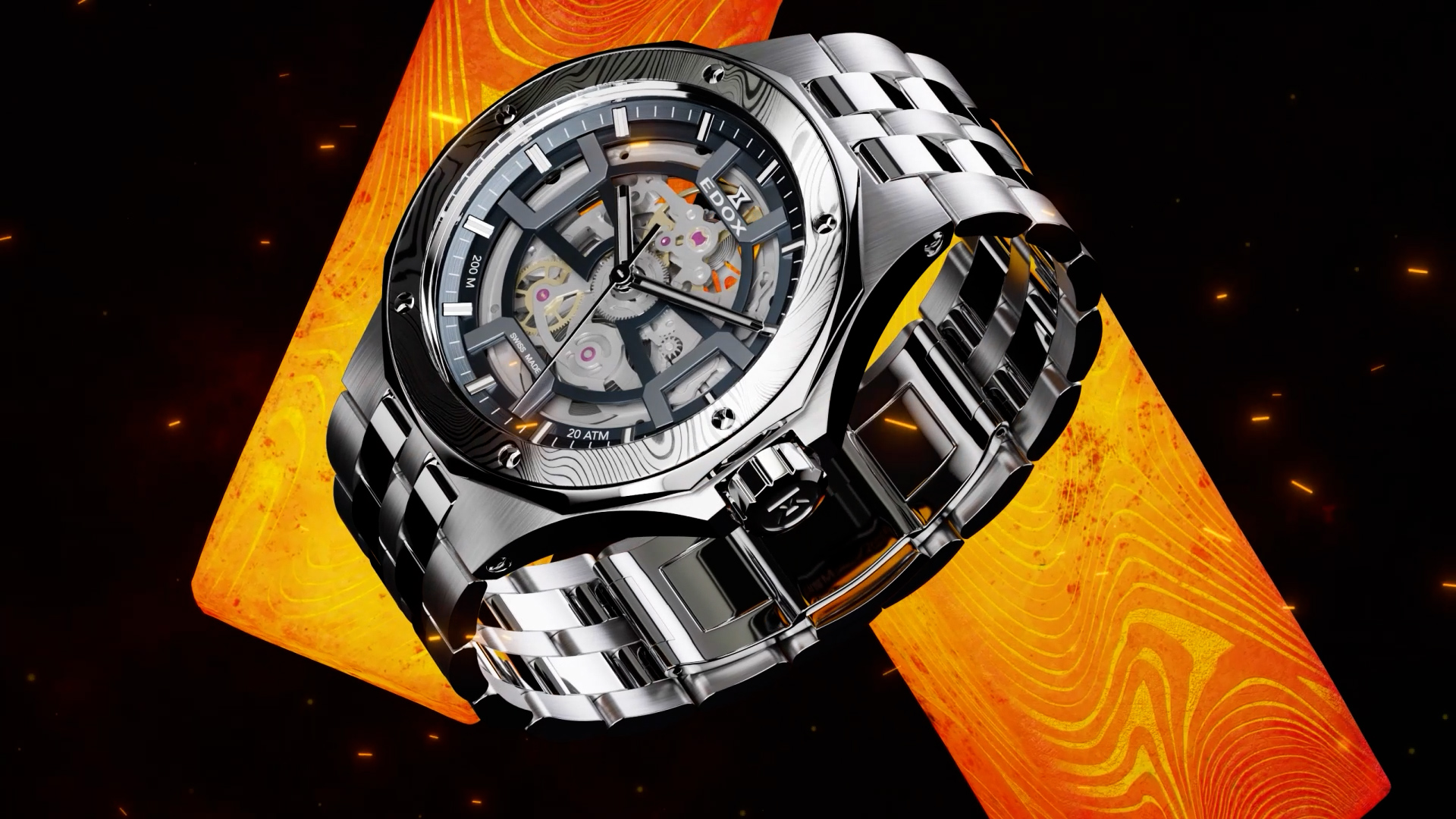 200m防水と精緻な自動巻きムーブメントの力強さと呼応し、