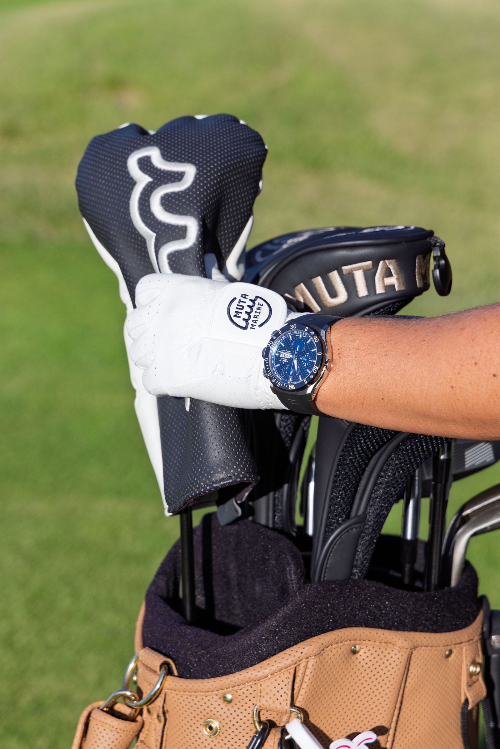 腕時計はとても好きです。出来ればゴルフ中にも着けたいのですが、さすがにこの時計は難しいですね(笑)。スイングに影響が出そうです。でも、プロゴルファーの中には腕時計を着けたままプレイする人も結構多いんです。有名な選手の手元をよく見ると結構高級な腕時計を着けていたりして、それがカッコいいなと思います。
