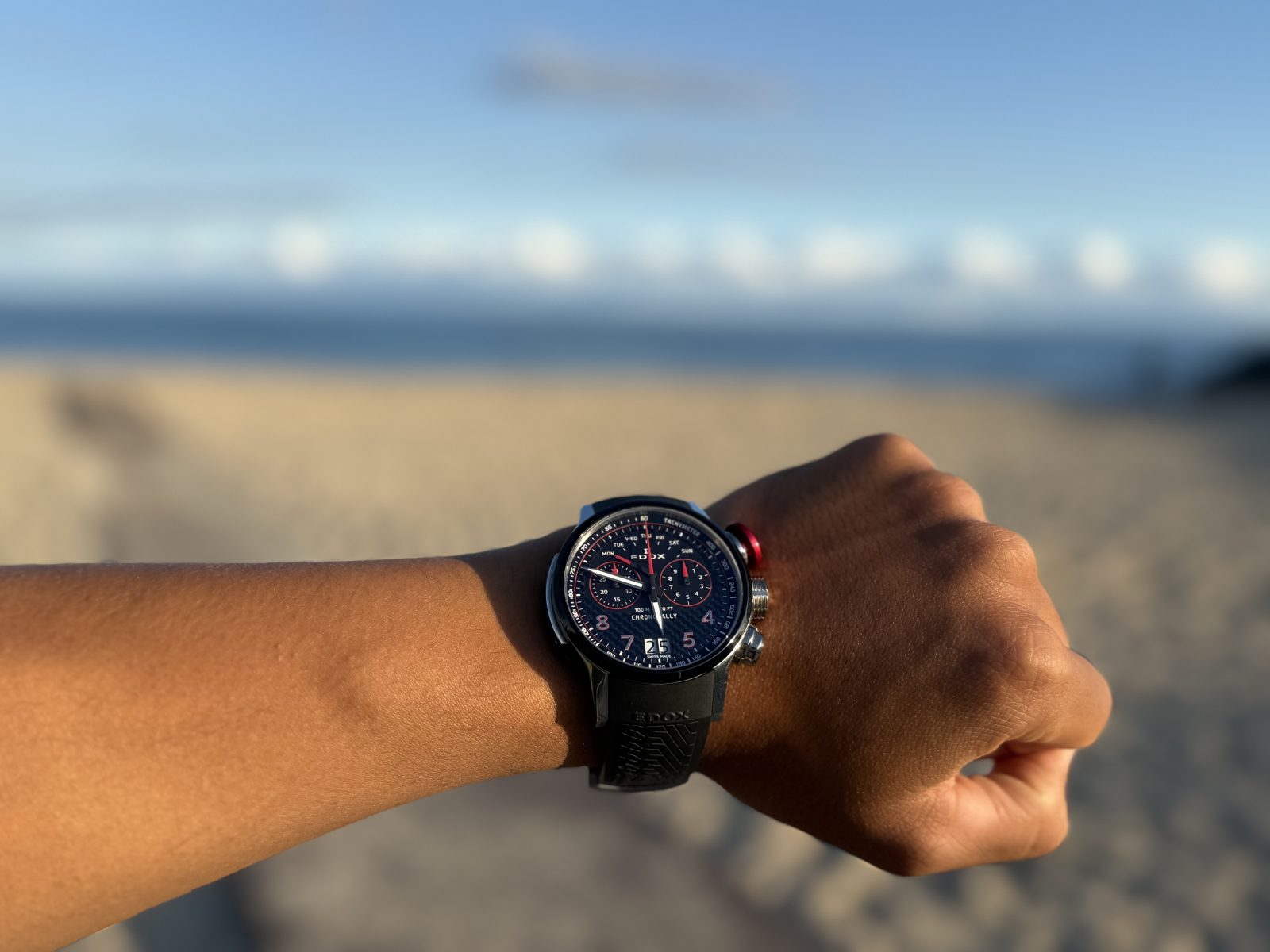 ヨーロッパのレーサーには、かなり稼いでいる人がたくさんいます。着けている腕時計も、高級なものばかり(笑)。なにせ世界の一流腕時計ブランドが、公式時計を担当していますから。レース中に腕時計は着けませんが、レース前後で着けていると、必ずどこのブランドなのかチェックされます。特に日本人選手は今シーズン2人しかいないので、注目されるチャンスが増えるなか、エドックスのアンバサダーになれたことが本当に嬉しかったです。