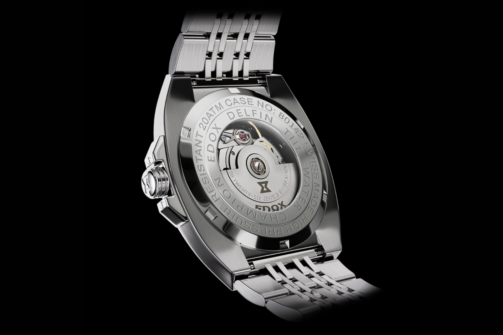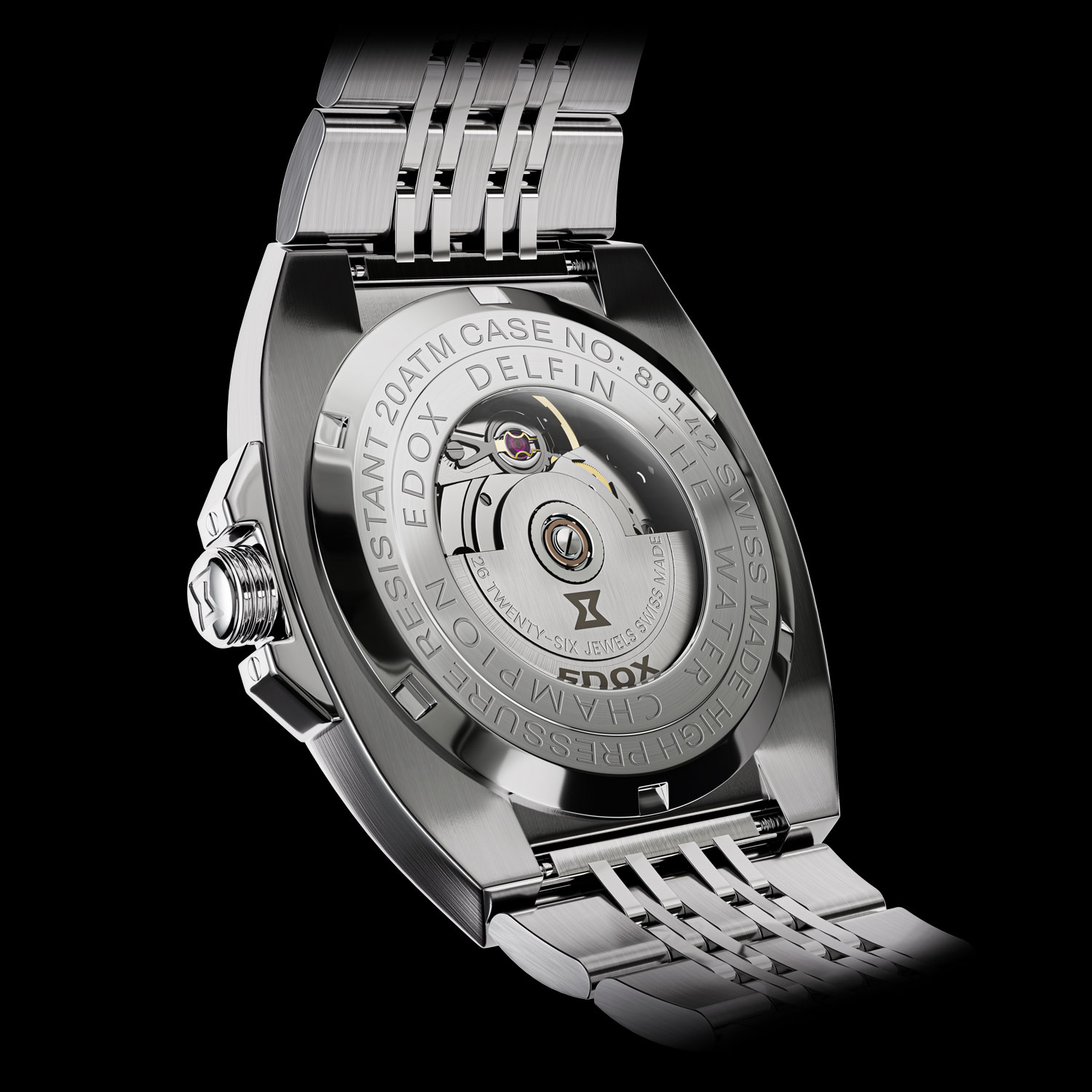 1973年のデルフィンに初採用された12角形ベゼルは、現行のデルフィンコレクションにも受け継がれる象徴的意匠です。本作では、このアイコニックなデザインを軸に、1970 年代のモデルに見られる一体感のあるケースフォルムを踏襲し、エッジに沿った面取りによって現代的で洗練された印象へと仕上げています。