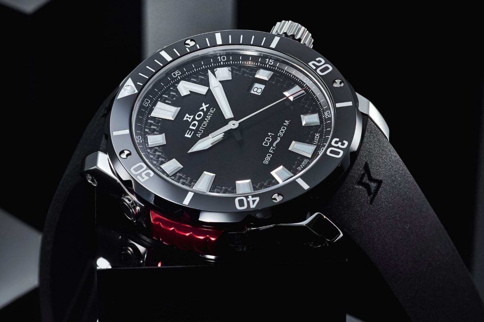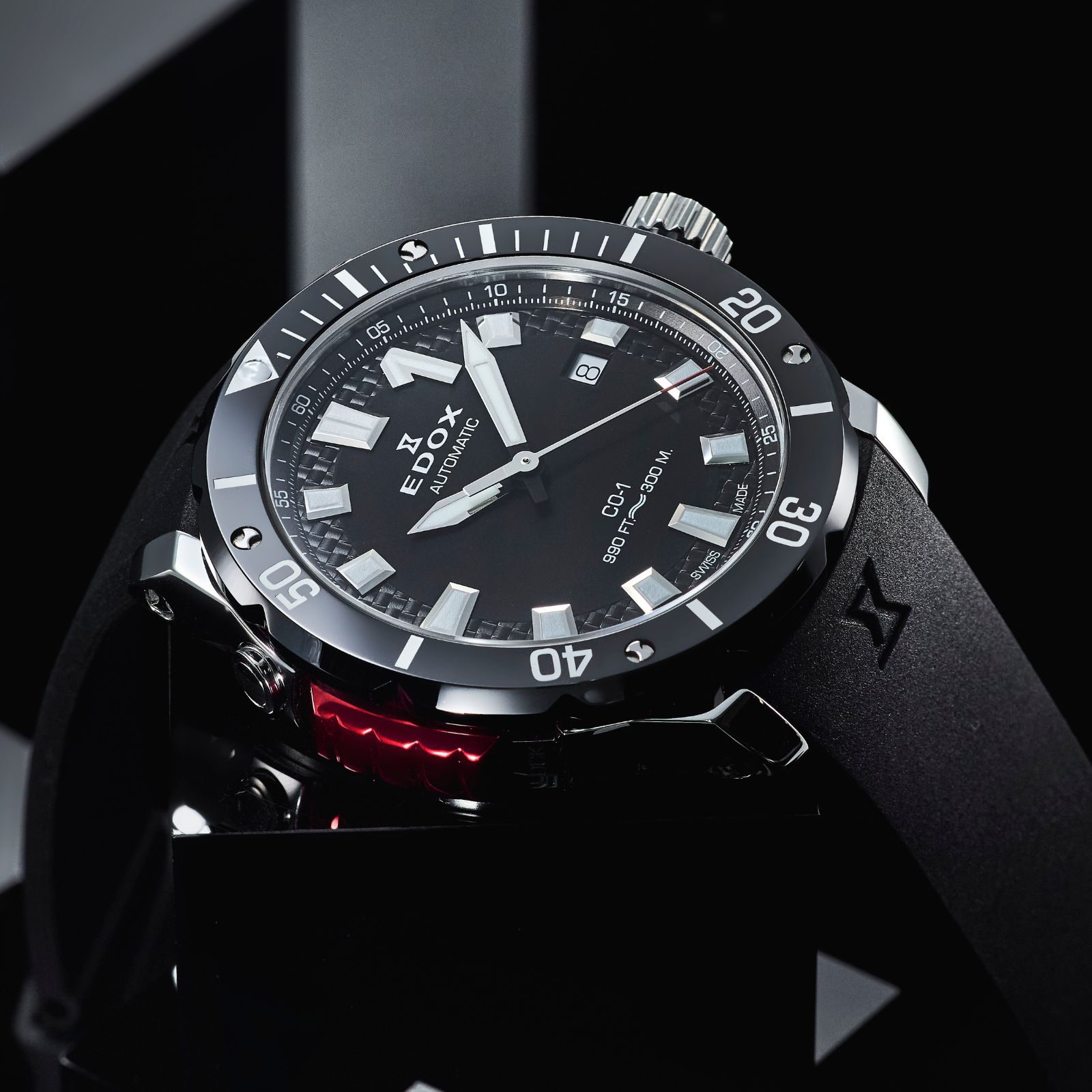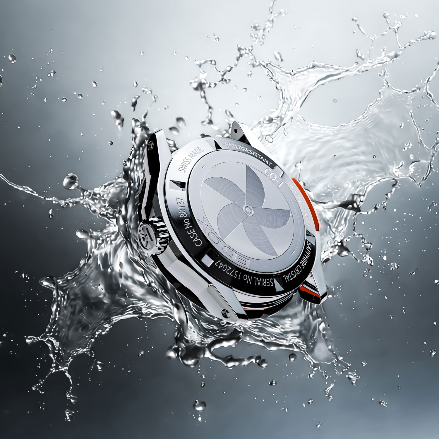 ねじ込み式リューズや堅牢なケース構造、厚みのあるサファイアクリスタル風防により、ブランドコンセプトである “THE WATER CHAMPION” にふさわしい300m防水を実現。