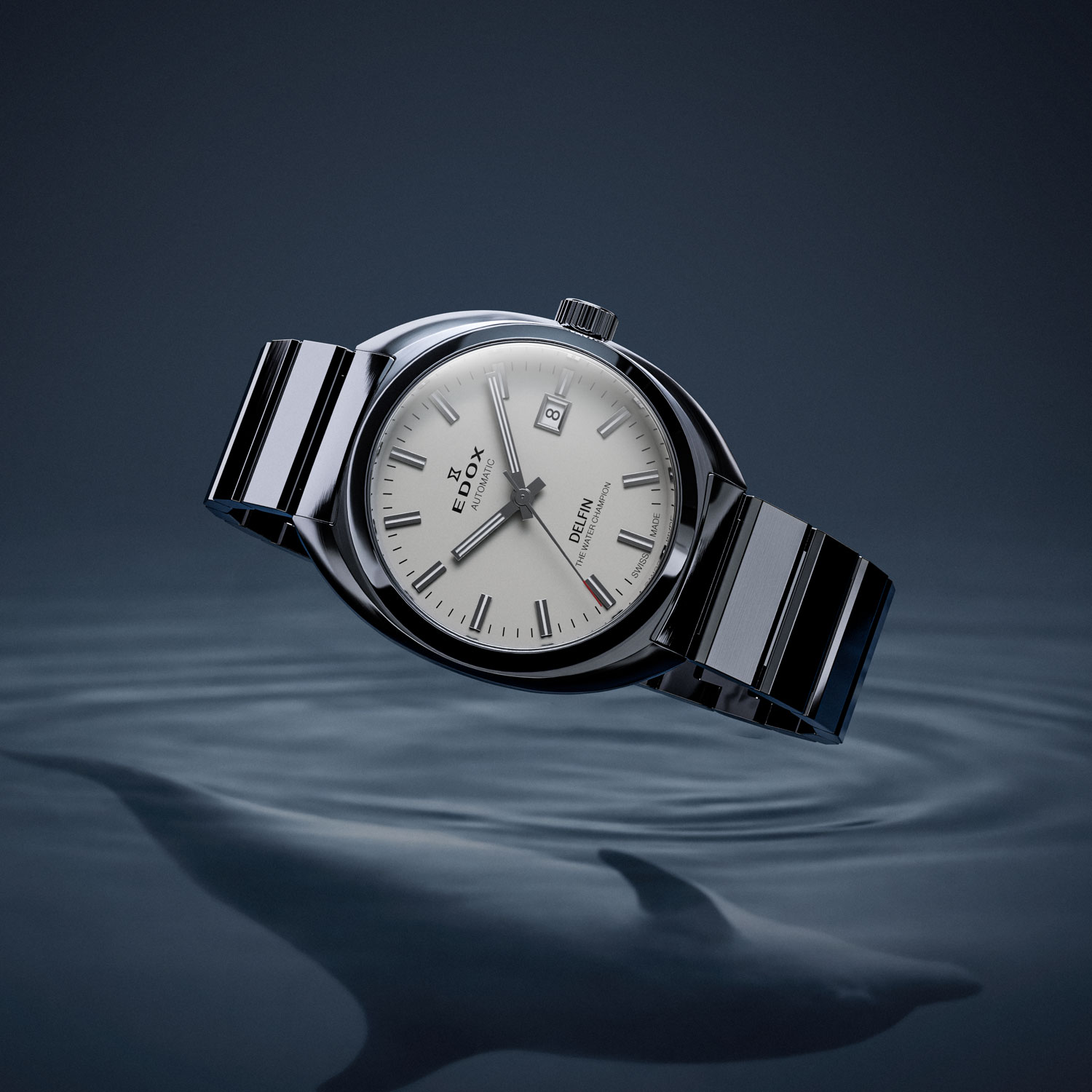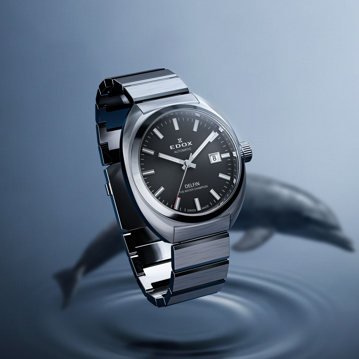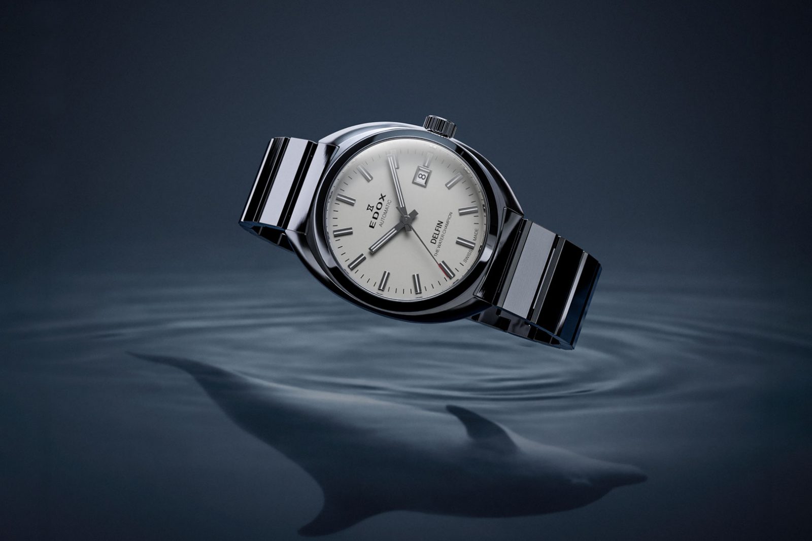 この革新的な防水技術は高く評価され、エドックスは“THE WATER CHAMPION”として広く認知される契機となります。デルフィンは、ブランドの信頼性と技術力を象徴する存在として、その後の時計開発の礎を築きました。