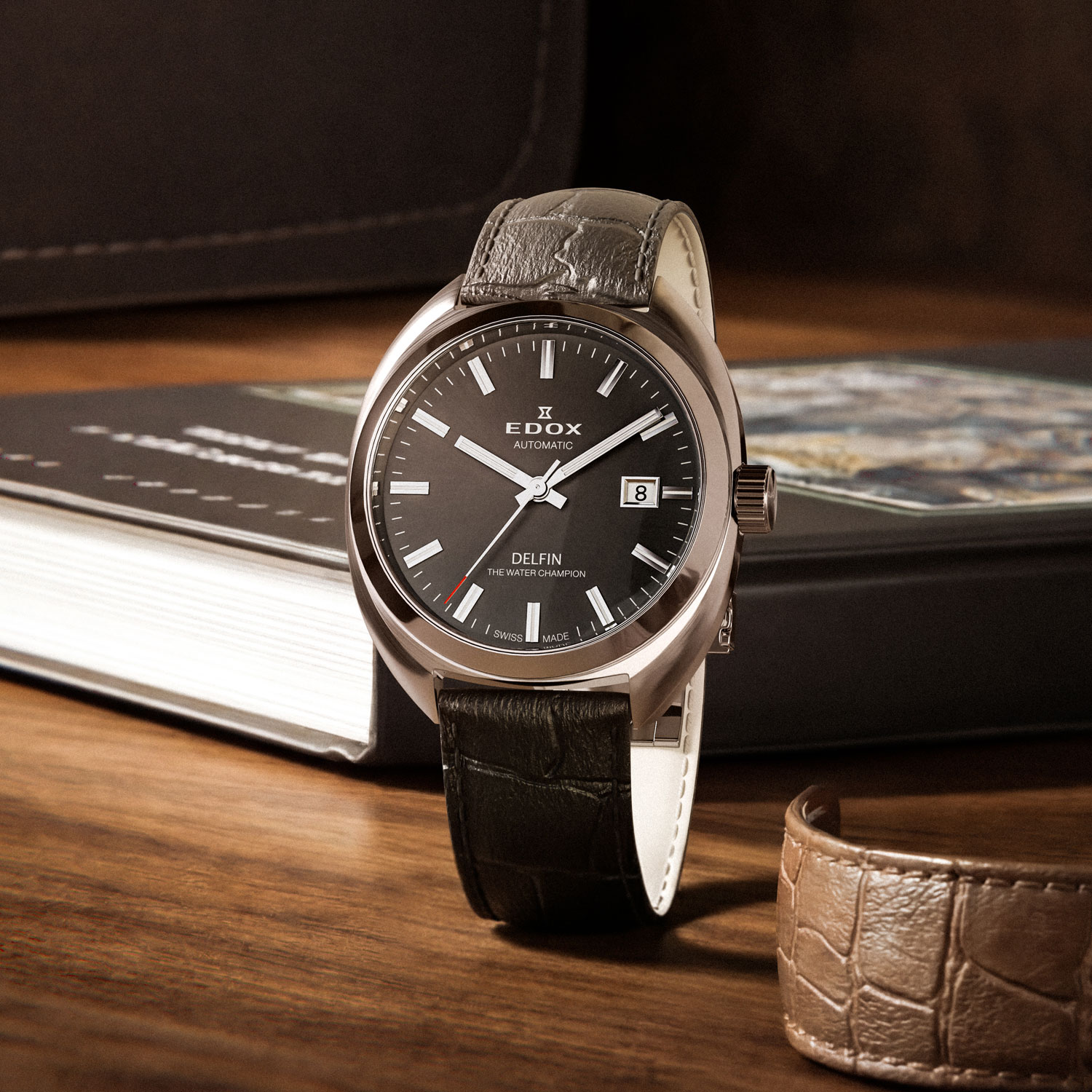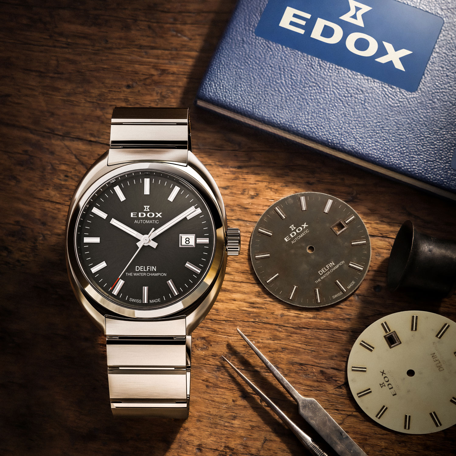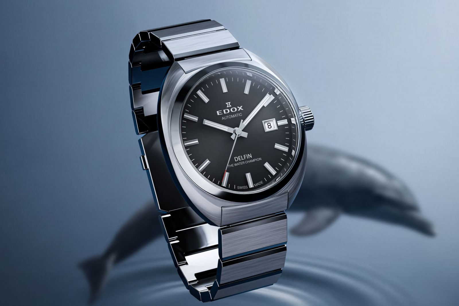 この革新的な防水技術は高く評価され、エドックスは“THE WATER CHAMPION”として広く認知される契機となります。デルフィンは、ブランドの信頼性と技術力を象徴する存在として、その後の時計開発の礎を築きました。